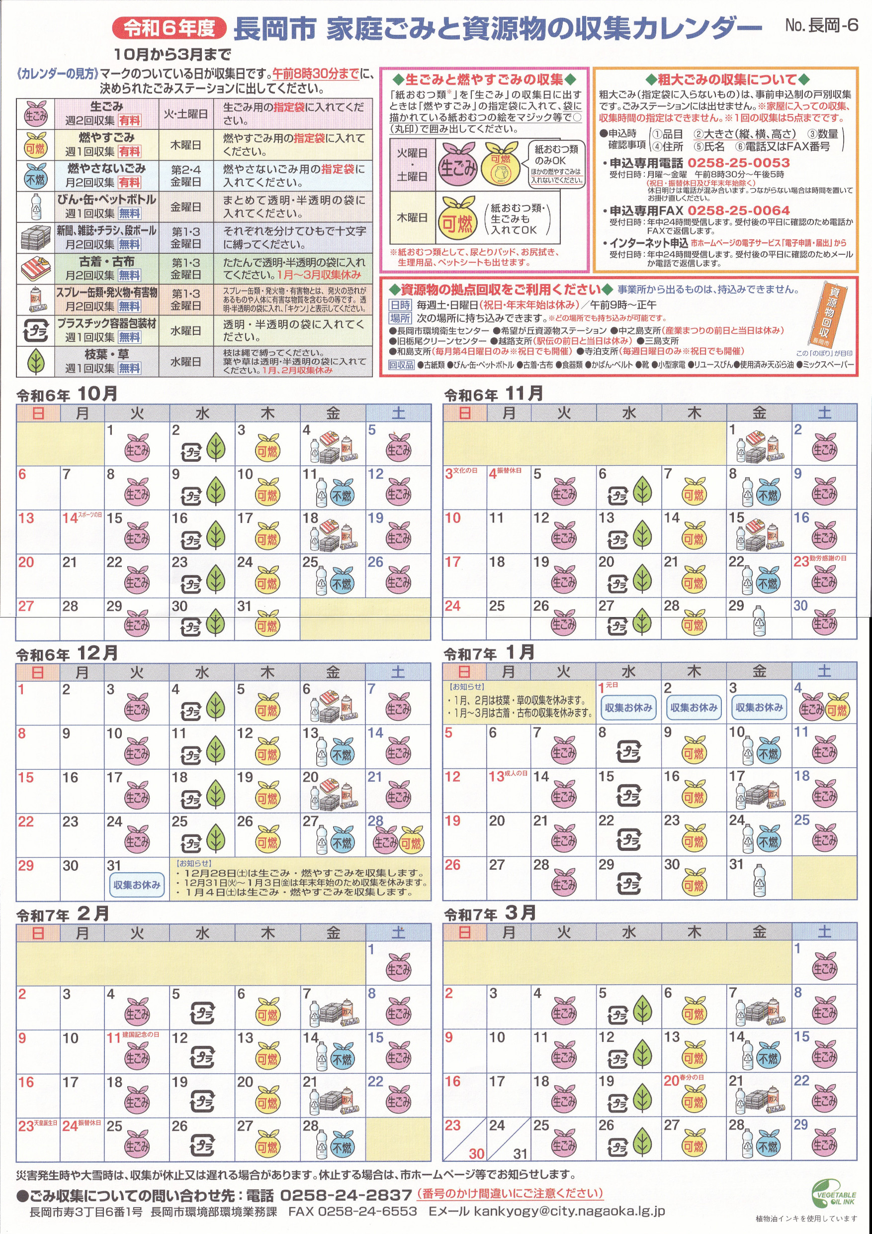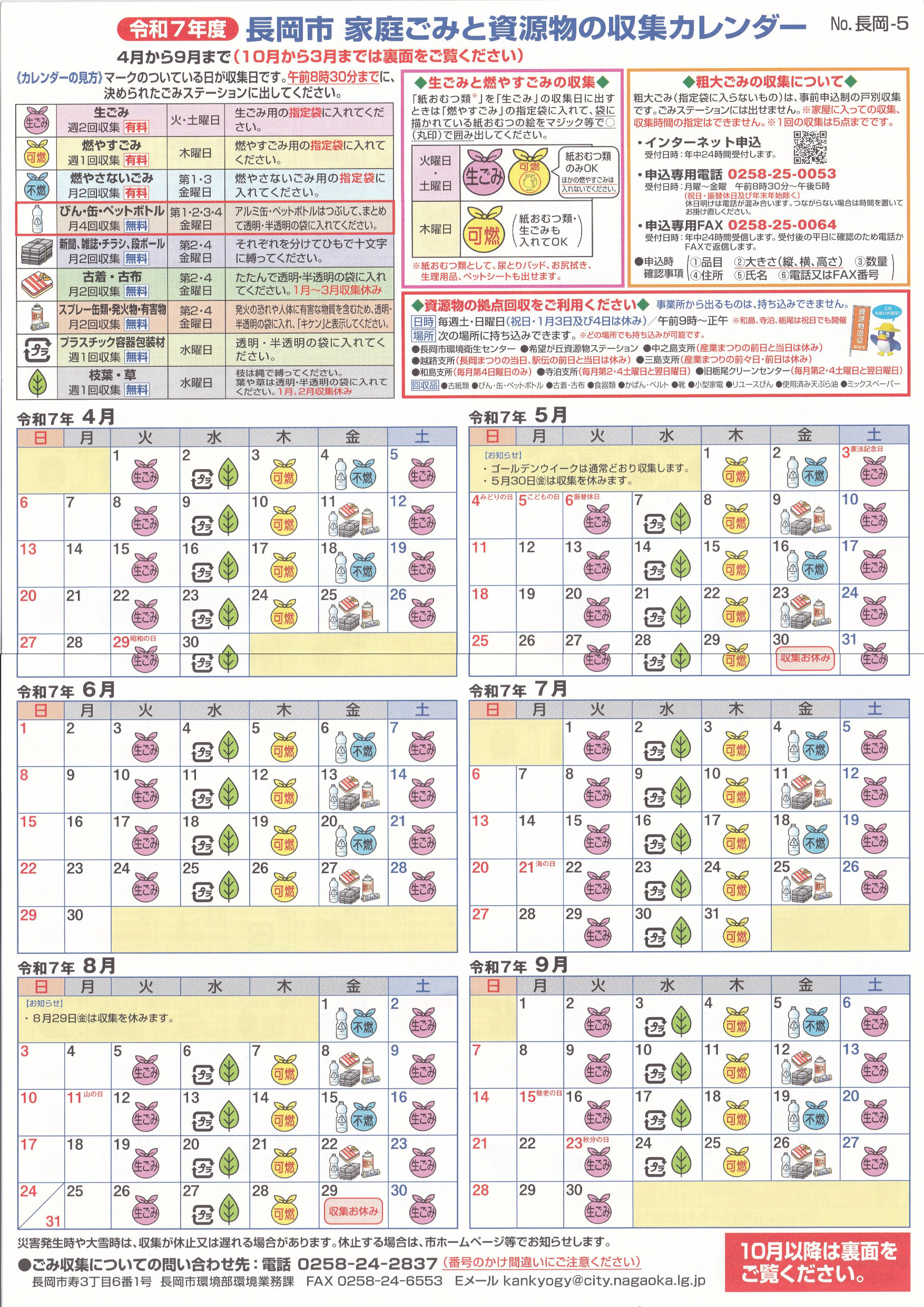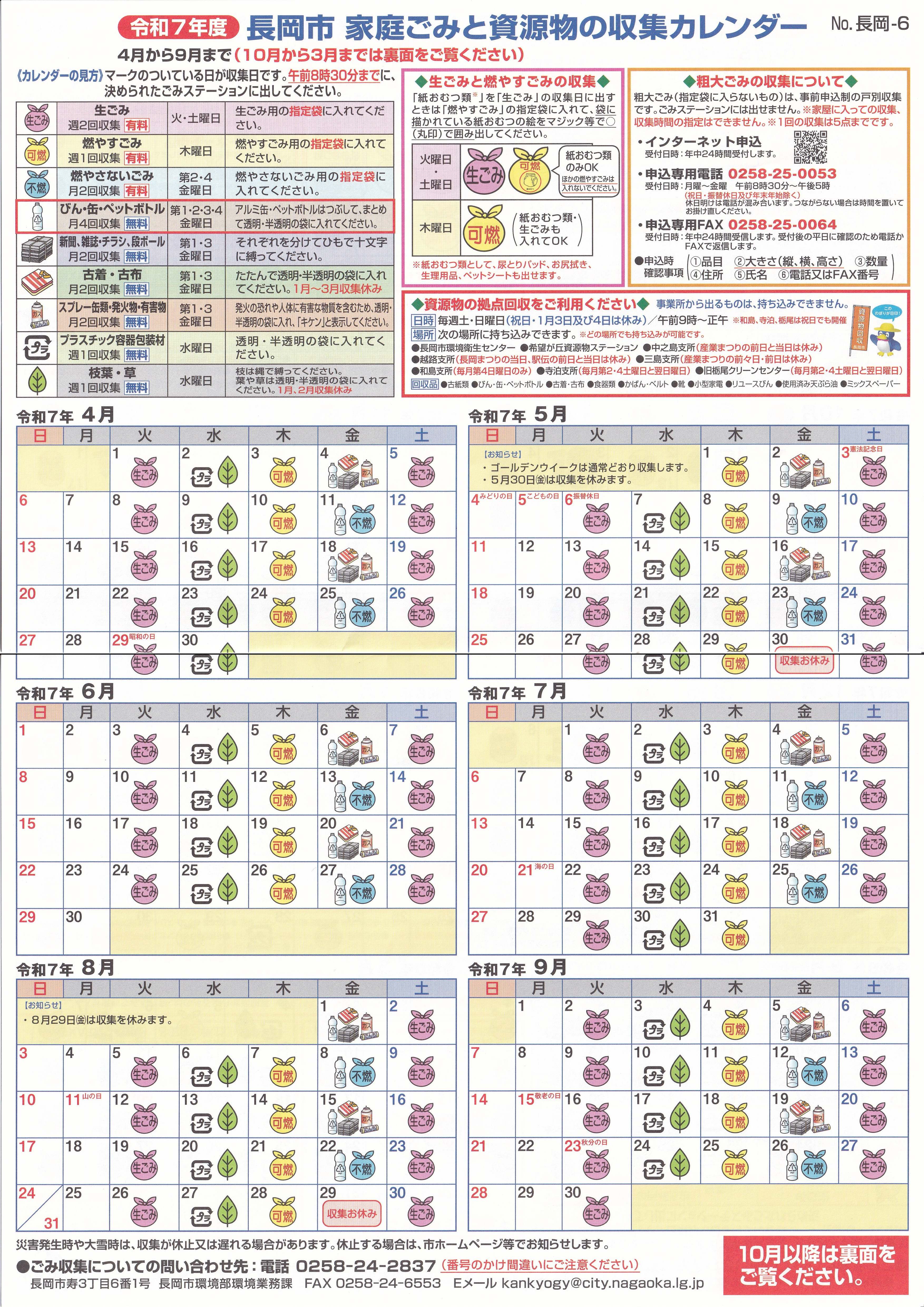 収集カレンダー5(4月~9月)、(10月~3月)