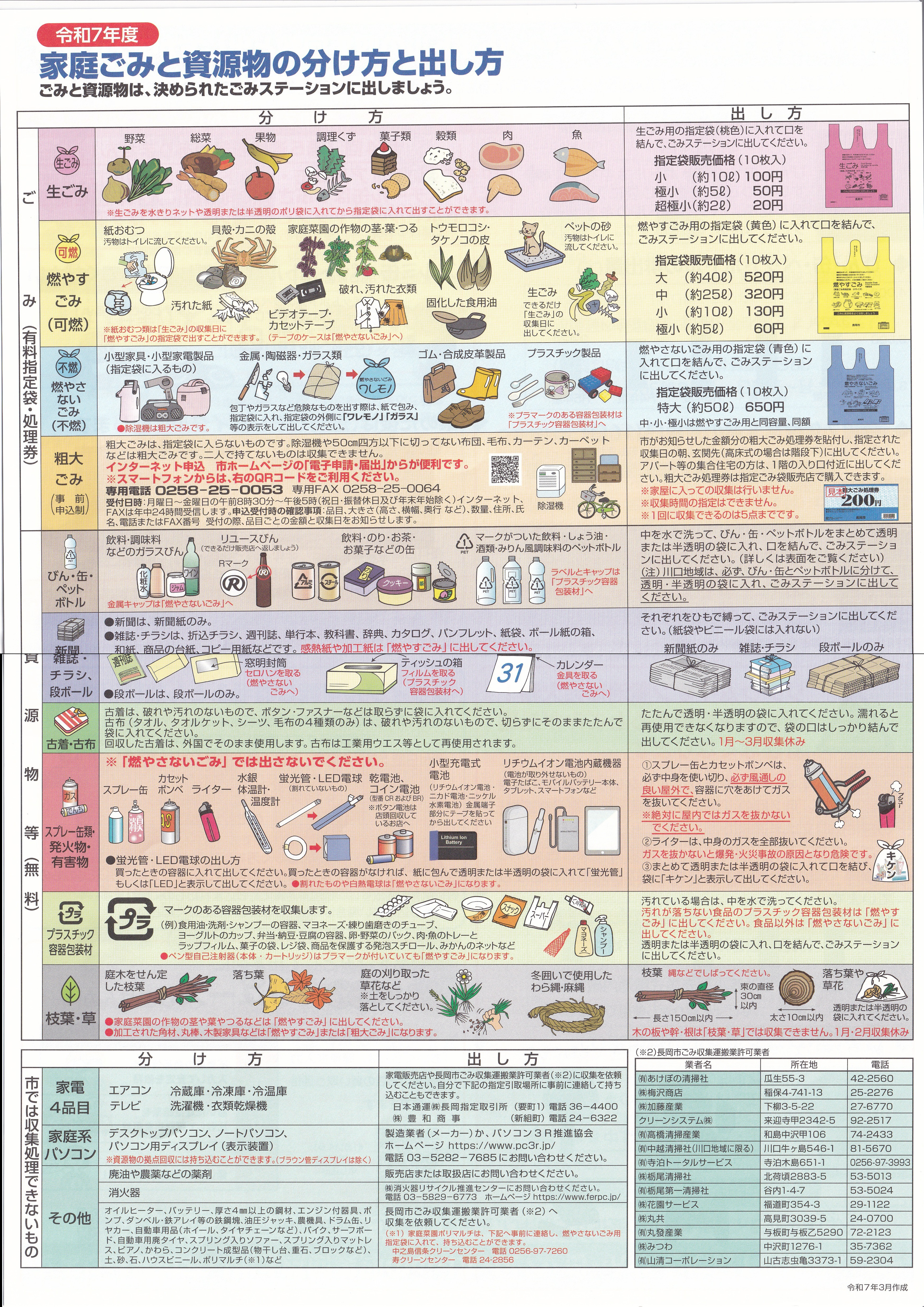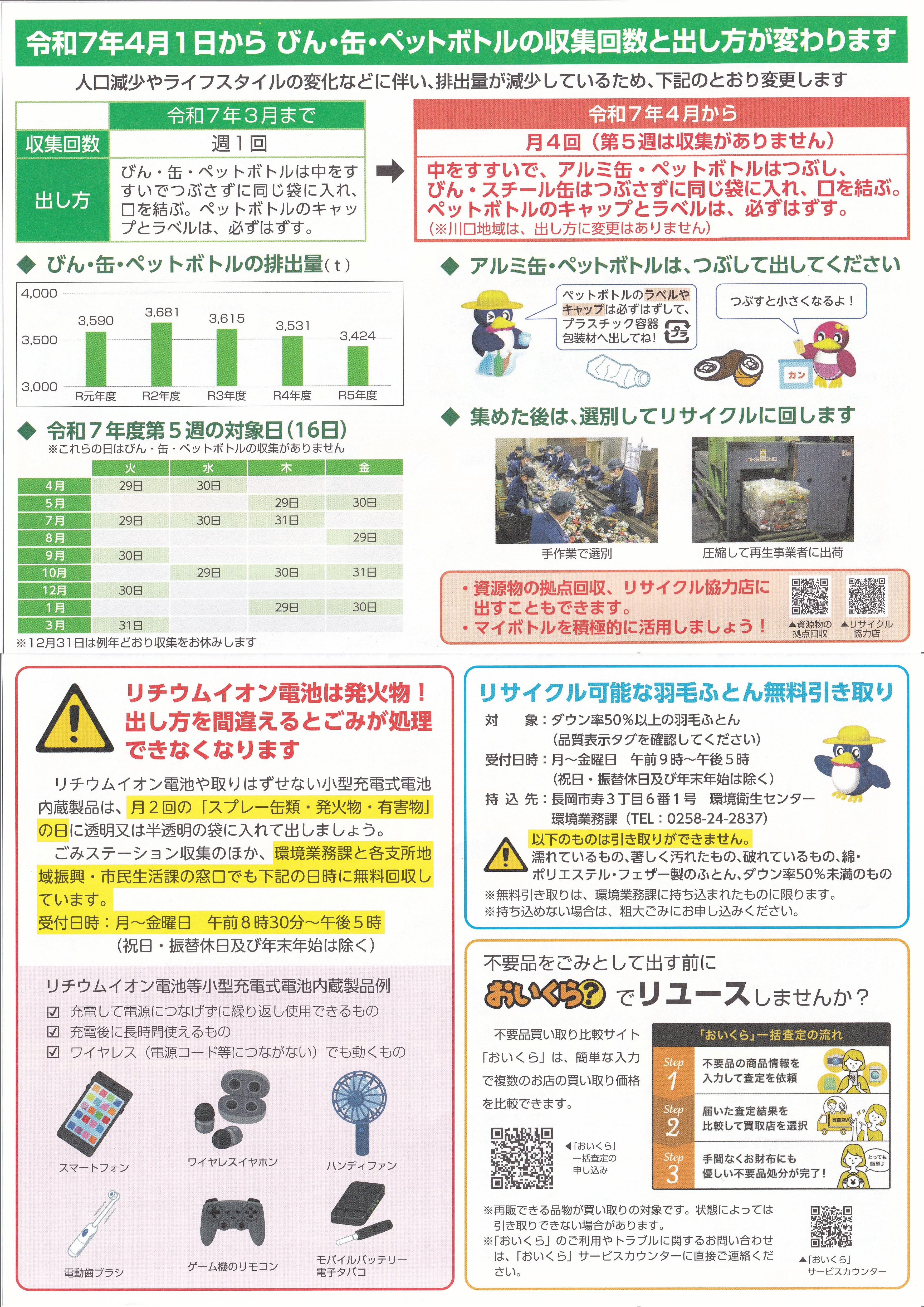 令和7年版ゴミカレンダー※クリックすると拡大されます(※令和6年版は下にあります)